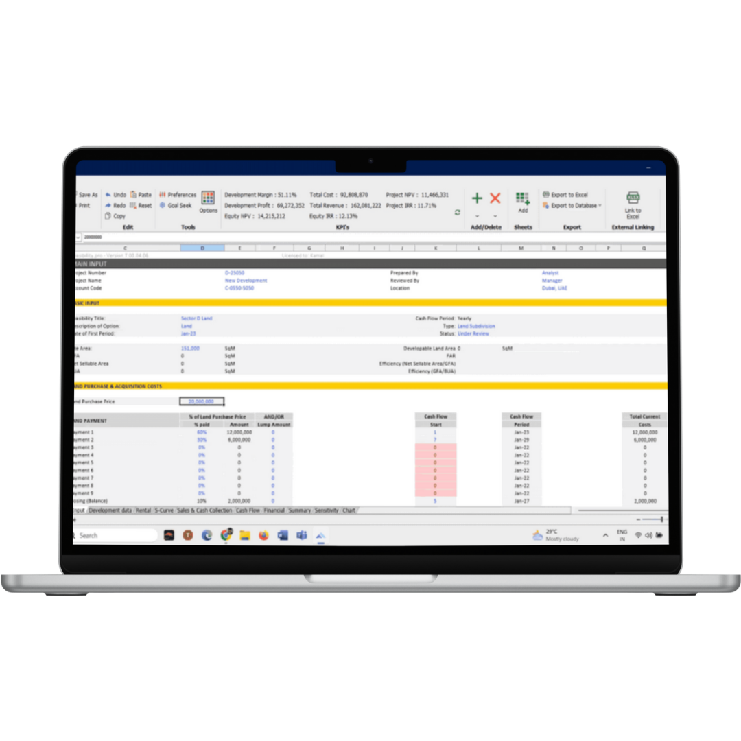 We create fully customized feasibility tools and solutions tailored to support every stage of your real estate development journey—from early-stage feasibility studies to detailed budgeting, cash flow analysis, and long-term forecasting. Our platform is built to adapt to your specific needs, ensuring accuracy, flexibility, and clarity throughout the lifecycle of your project.